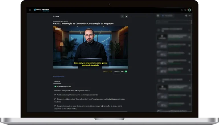 Curso completo ensinando a metodologia utilizada para converter leads não compradores e recuperar faturamento. A mesma estratégia aplicada nos bastidores da Megafone, responsável por transformar rejeição em receita recorrente.